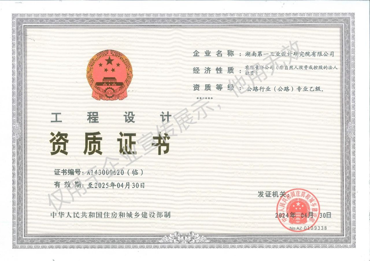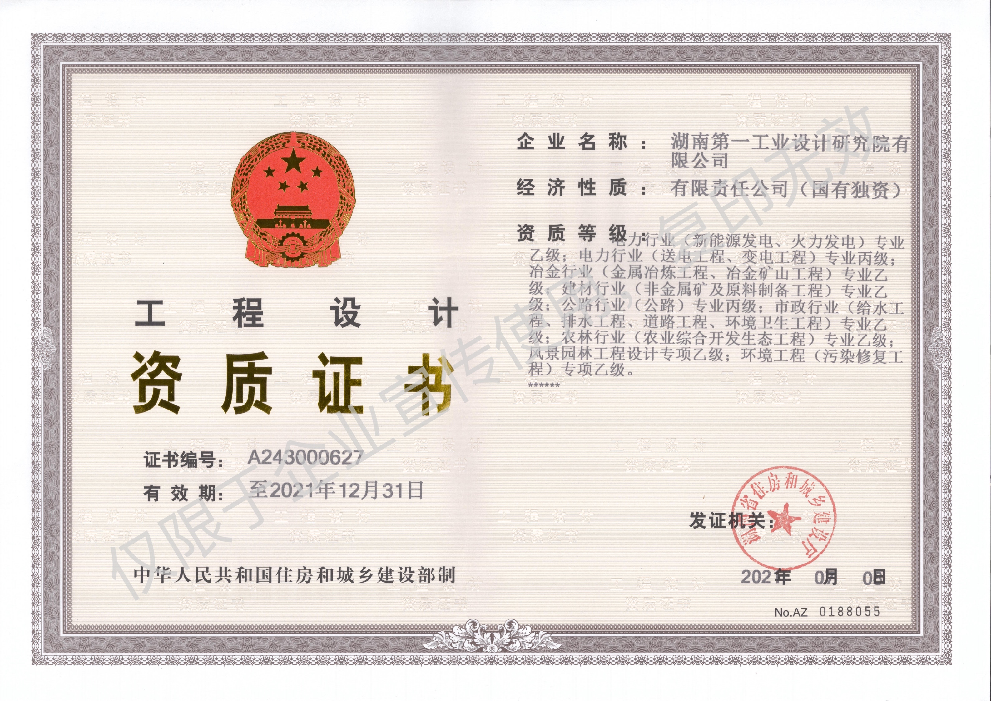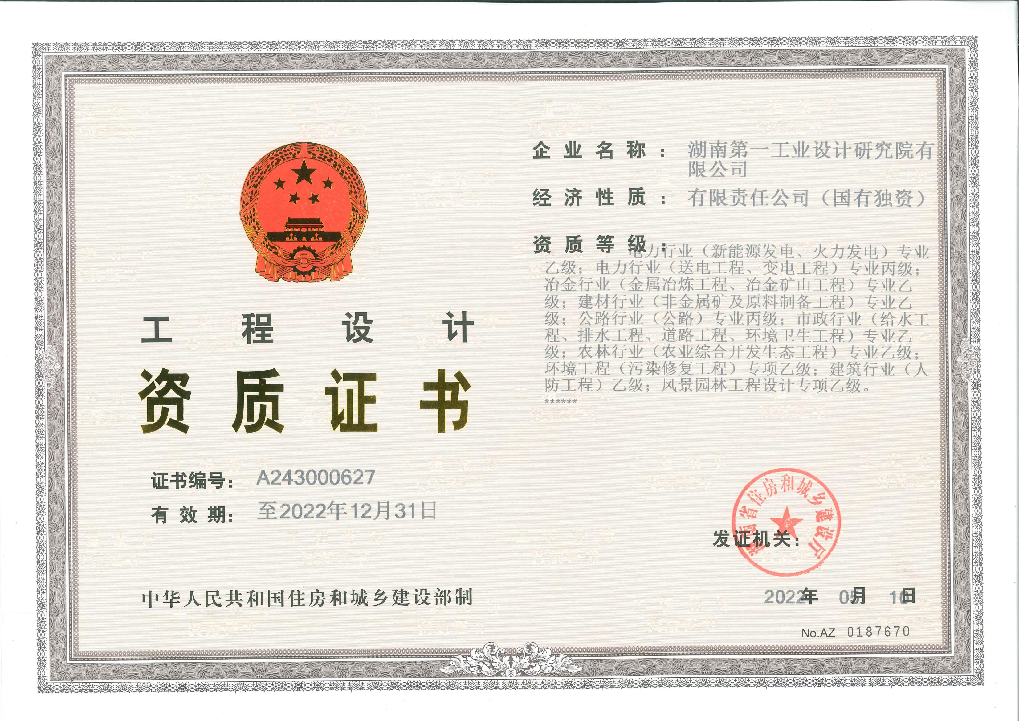 工程設(shè)計(jì)乙級資質(zhì)證書