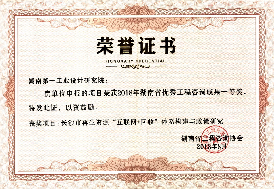 湖南省優(yōu)秀設(shè)計(jì)表揚(yáng)金獎(1984)